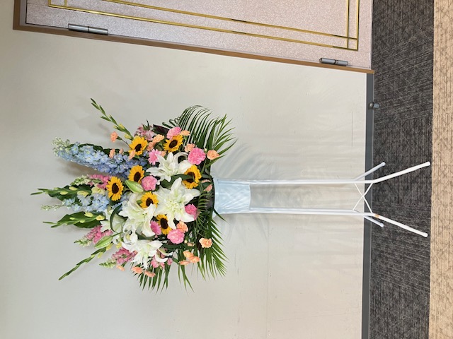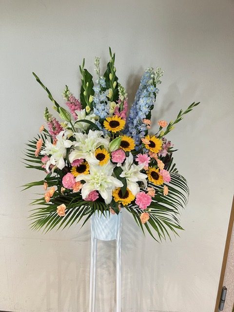 犬山市のお花屋さん、花の香花園です。ピアノの発表会や、バレエの発表会に飾る会場装飾のスタンド花です。ロビーやステージ、受付などに飾ると、より、華やいで良いですよ。
