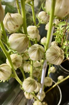 紅色の、ベニアオイ(ローゼル)は見かけることが多いかと思いますが、白い色のベニアオイは珍しいですね。白いのに紅と名がつくから??になってしまいますが(💦)、ローゼル・アイボリーと言うそうです(^^)/