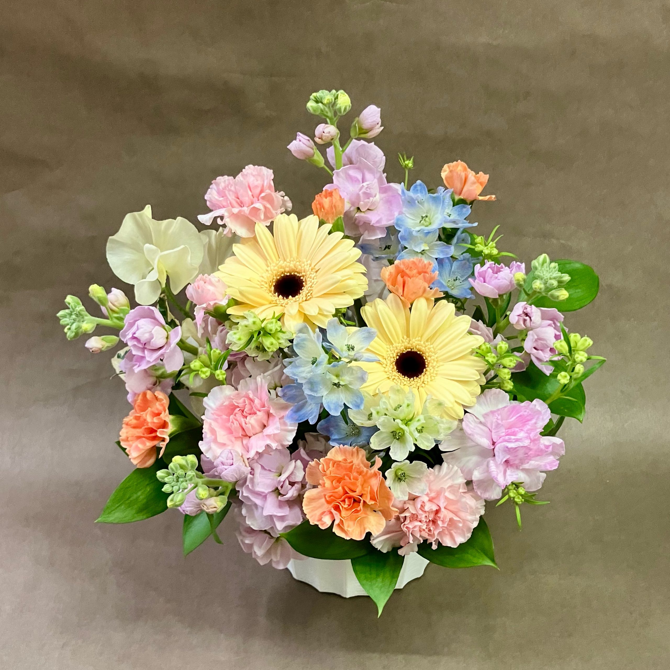 お任せでしたので、色合いミックスで優しい感じにお作りいたしました。