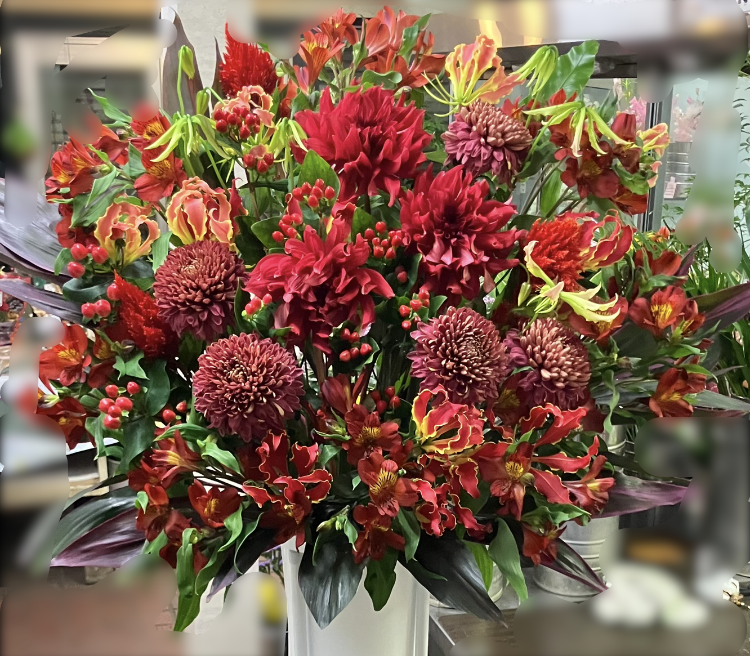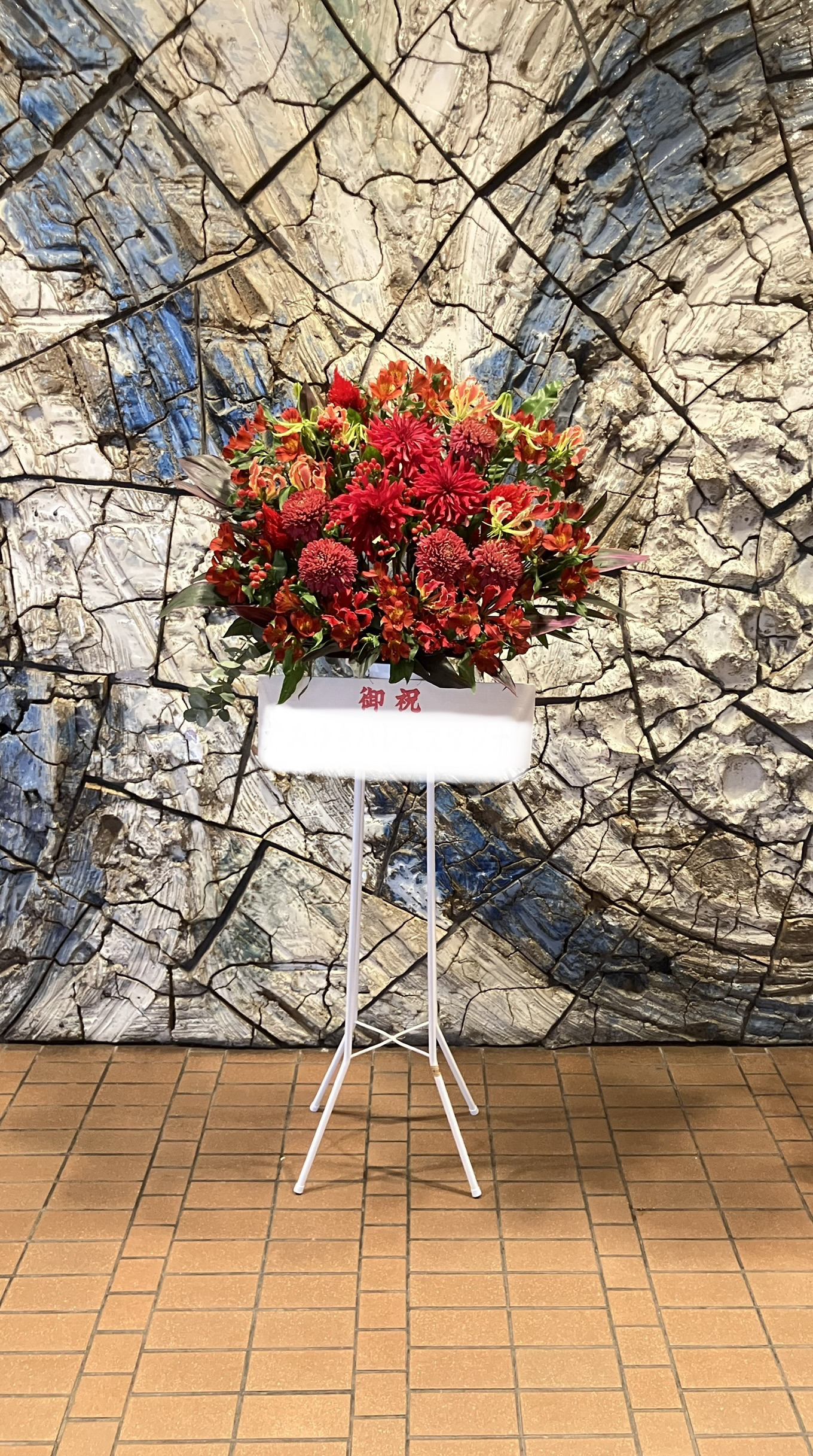 赤色系の色合いをご希望されました。会場装飾のスタンド花です。赤色はポジティブでエネルギッシュなイメージがあり素敵ですね。犬山市にあります市民文化会館にてバレエ の 発表会 が開催されました。おめでとうございます!ご注文ありがとうございました。